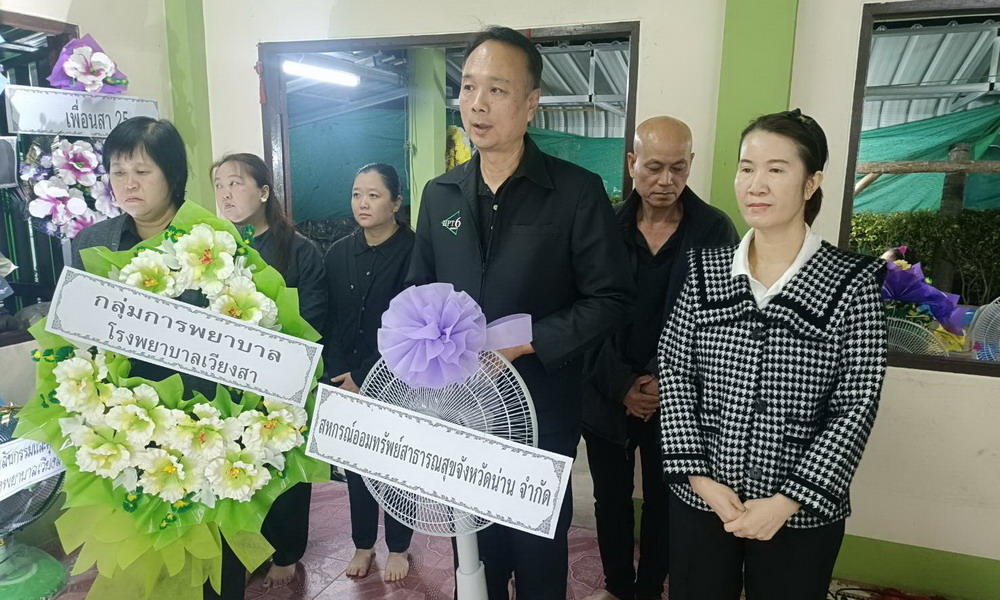วันที่ 25 มกราคม 2569 นายชำนาญ พิเคราะห์ กรรมการสหกรณ์ออมทรัพย์สาธารณสุขจังหวัดน่าน จำกัด พร้อมด้วยคณะเจ้าหน้าที่โรงพยาบาลเวียงสา เป็นตัวแทนสหกรณ์ฯ วางพวงหรีดเคารพศพนางจงเรียน สุรินทร์ เจ้าหน้าที่งานโภชนาการ โรงพยาบาลเวียงสา สมาชิกสหกรณ์ฯ ณ บ้านกลางเวียง ต.กลางเวียง อ.เวียงสา จ.น่าน